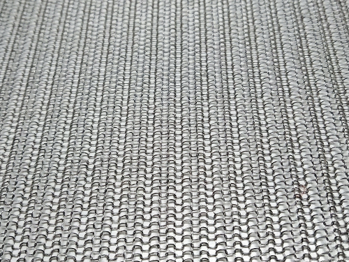 Tessuto brillante prodotto in acciaio inox e poliestere. Questo tessuto è stato appositamente studiato per la stratificazione in vetro poiché perfettamente stabile e non elastico.