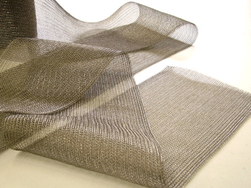 Tessuto pesante in acciaio inox. La sua struttura doppia lo rende resistente e morbido allo stesso tempo. Può essere goffrato. Utilizzabile per tendaggi, decorazione di negozi, stand fieristici e locali pubblici in quanto non attaccabile dal fuoco.
