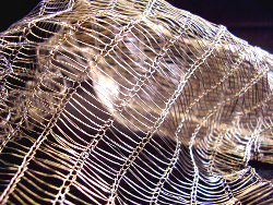 Stretchable stainless steel fabric. Very light and adaptable to complex shapes. It can be used for curtains, panels, sheers, ceilings, fashion accessories.