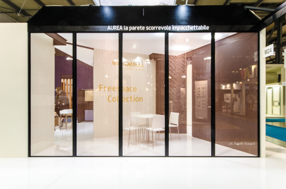 "Anaunia progetta, realizza e installa partizioni tecnologiche Made in Italy in Italia e nel mondo." Per la presentazione della parete AUREA presso Made Expo, Anaunia ha scelto il tessuto Dream71 copper.